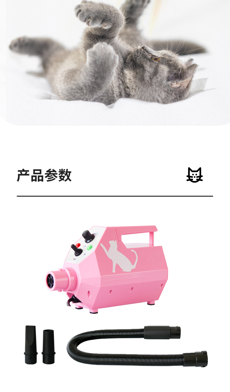 產(chǎn)品說(shuō)明:單馬達(dá)吹水機(jī),塑料外殼,風(fēng)量無(wú)級(jí)調(diào)速可加熱,配有可伸縮軟管和多個(gè)不同形狀吹嘴。 貓咪專用